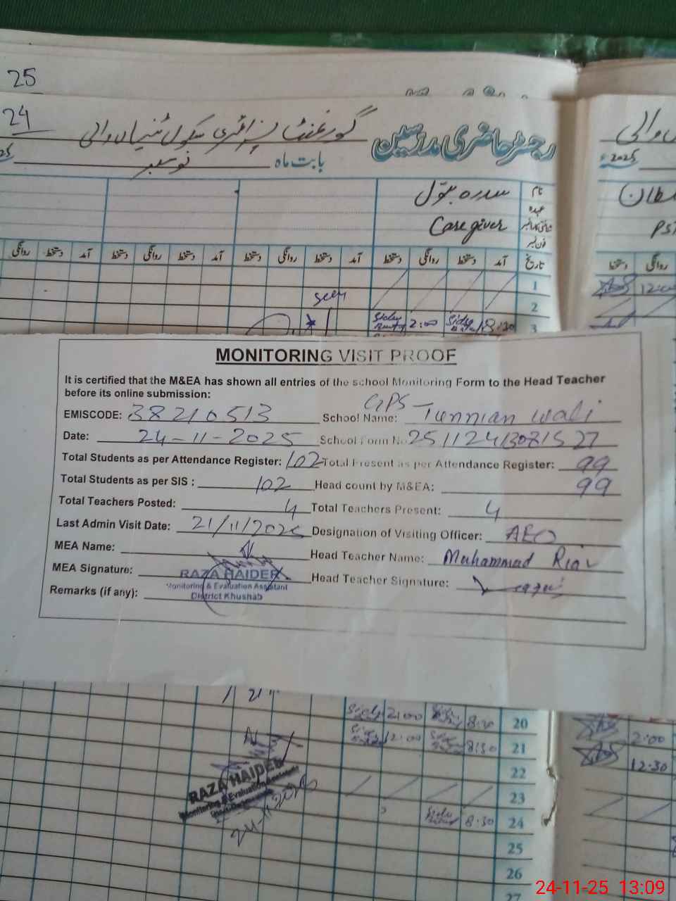 | EMIS Code: 38210513 | Name of School: GPS TUNNIAN WALI | |||