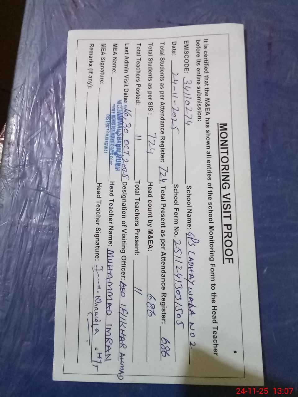 | EMIS Code: 34110274 | Name of School: GPS LADHAY WALA WARRAICH NO.2 | |||