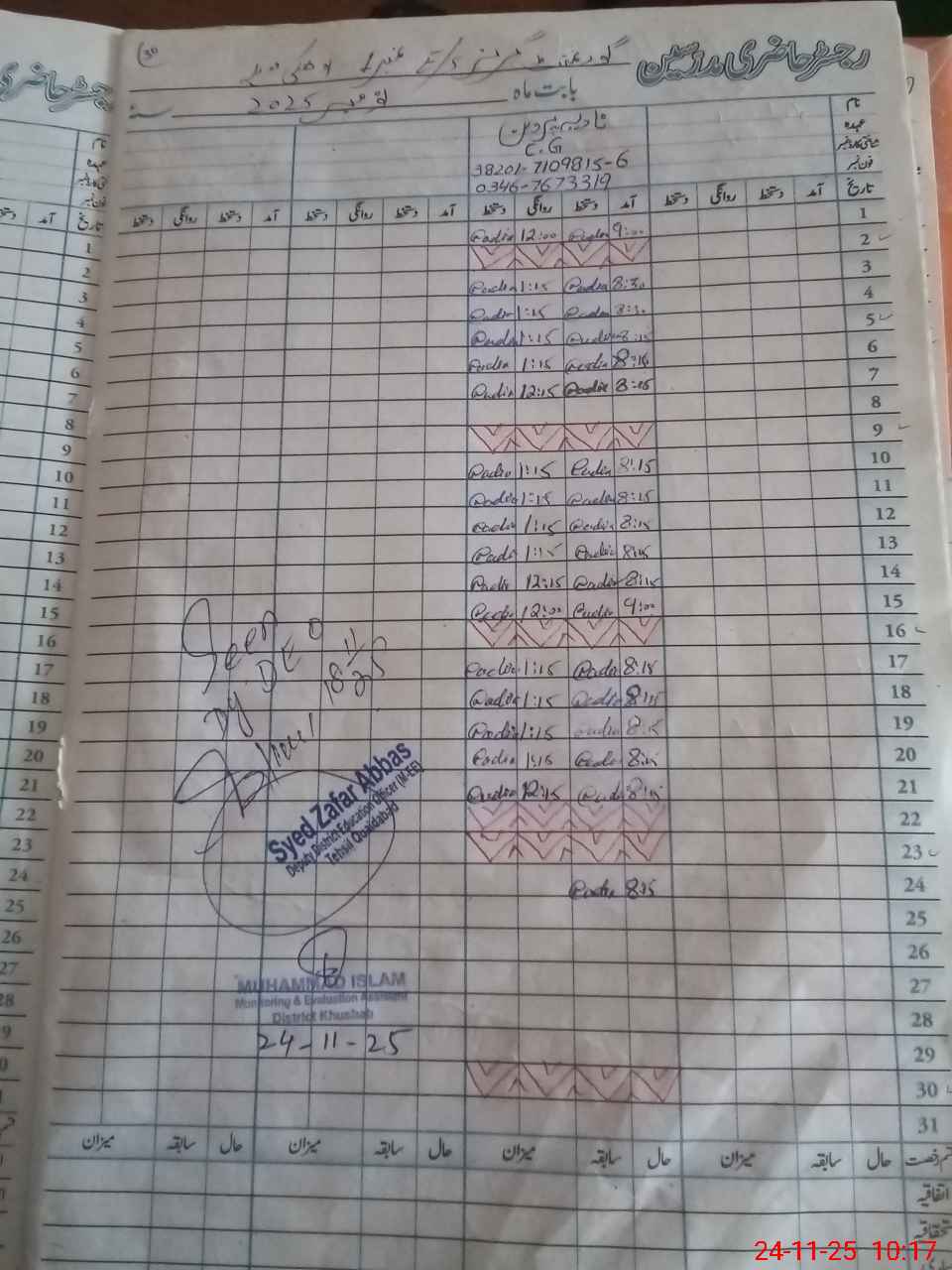 | Name: NA**** AK**** Designation: (School Headmaster's/Headmistress's) SSE URDU Phone/Cell Number: 03**** |