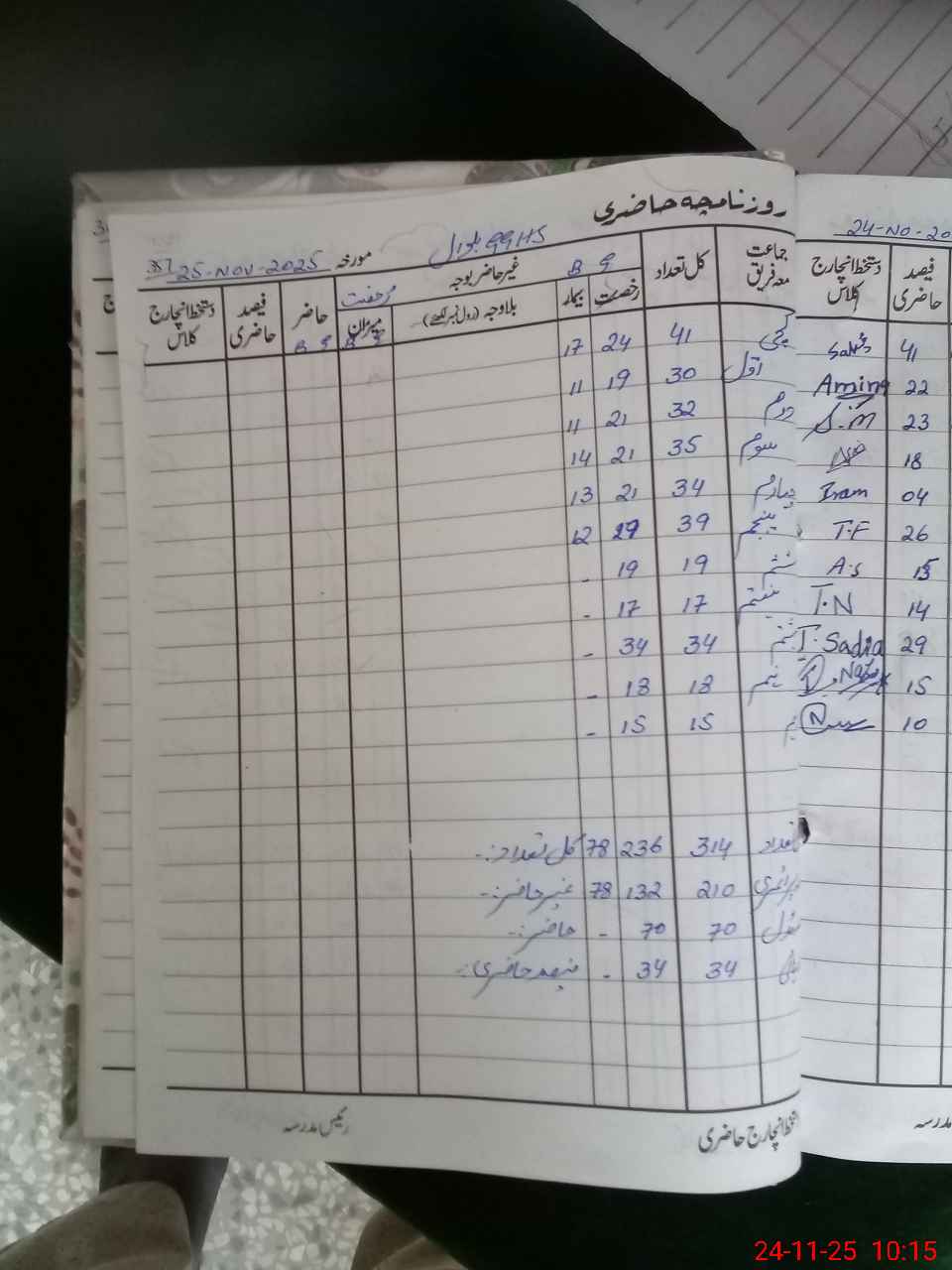 | CNIC | Full Name | Designation | R/C | Absence during last cal. month |