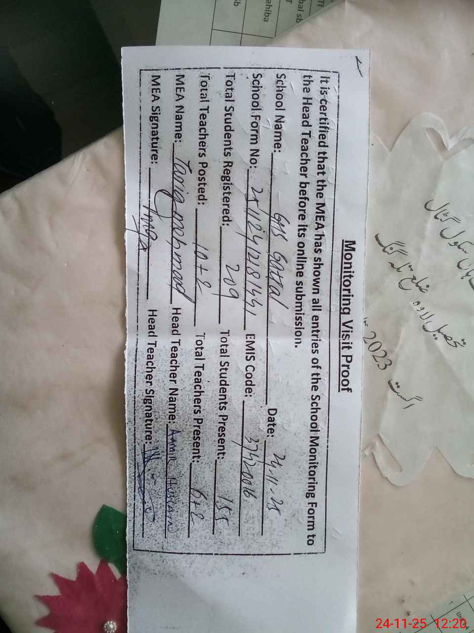 | EMIS Code: 37420016 | Name of School: GHS GATTAL | |||