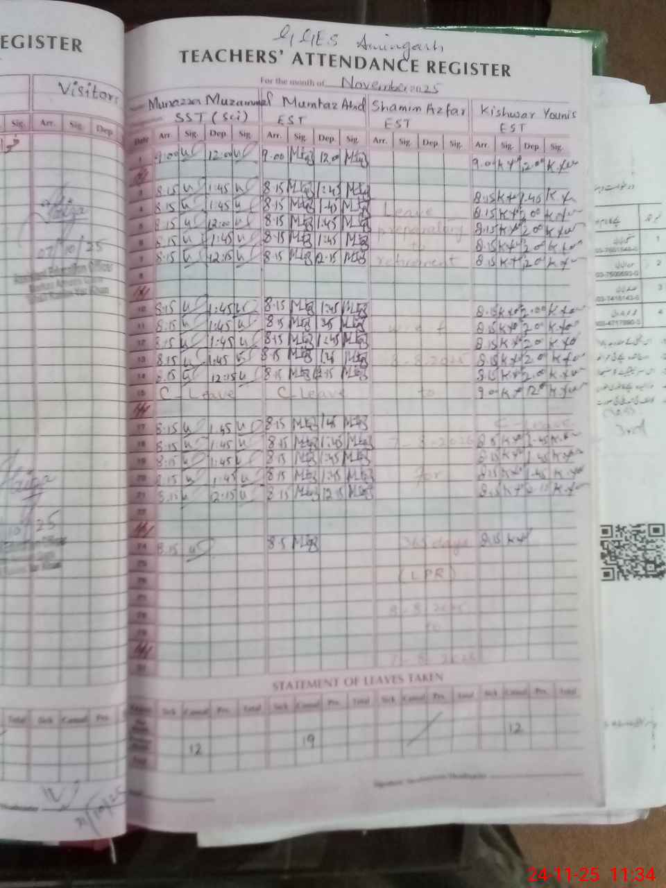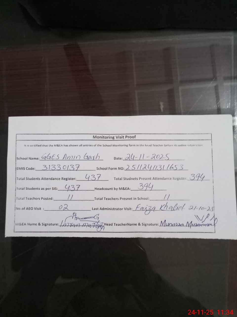 | Attendance Register | Head Teacher | MEA with School | Visit Proof |