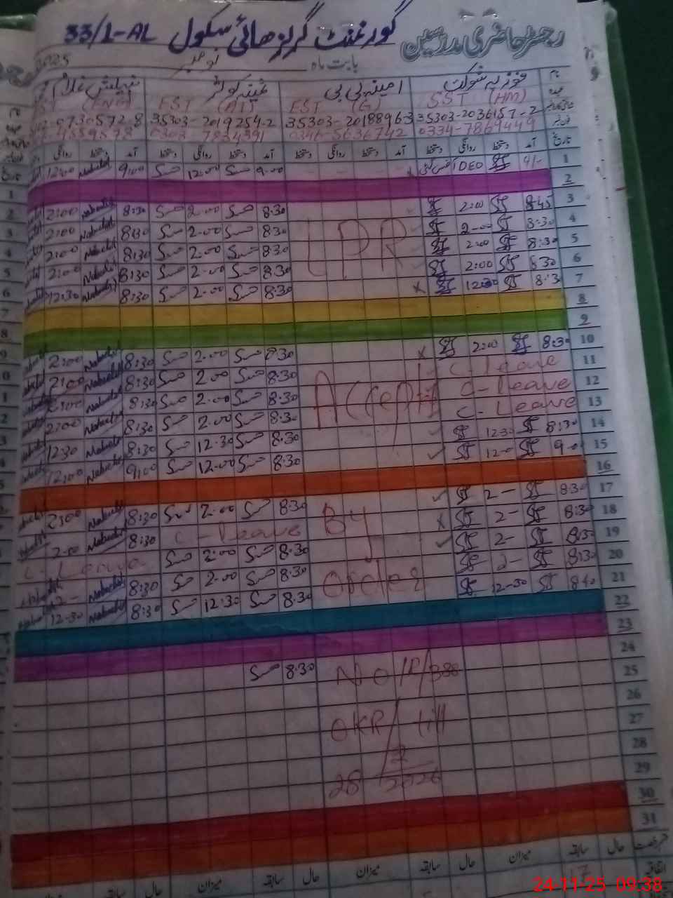 | CNIC | Full Name | Designation | R/C | Absence During Last Calender Month |