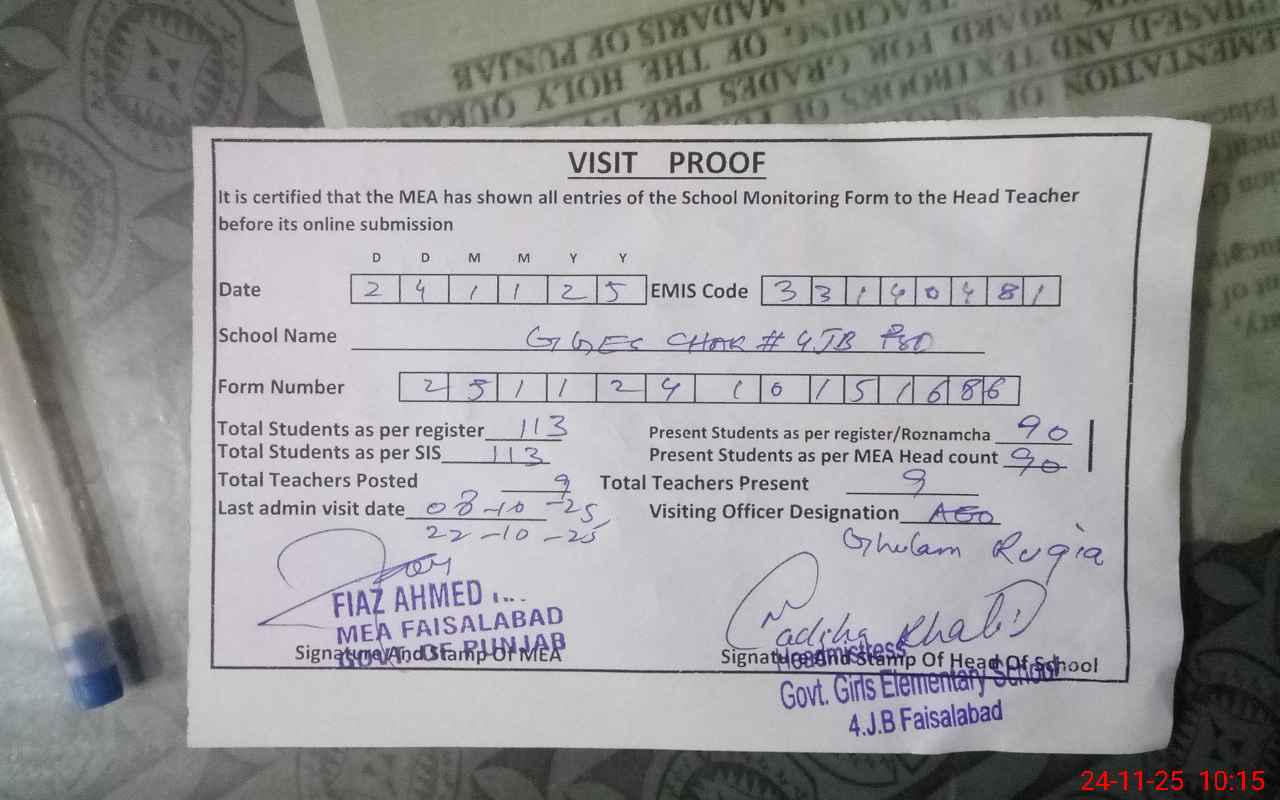 | Attendance Register | Head Teacher | MEA with School | Visit Proof |