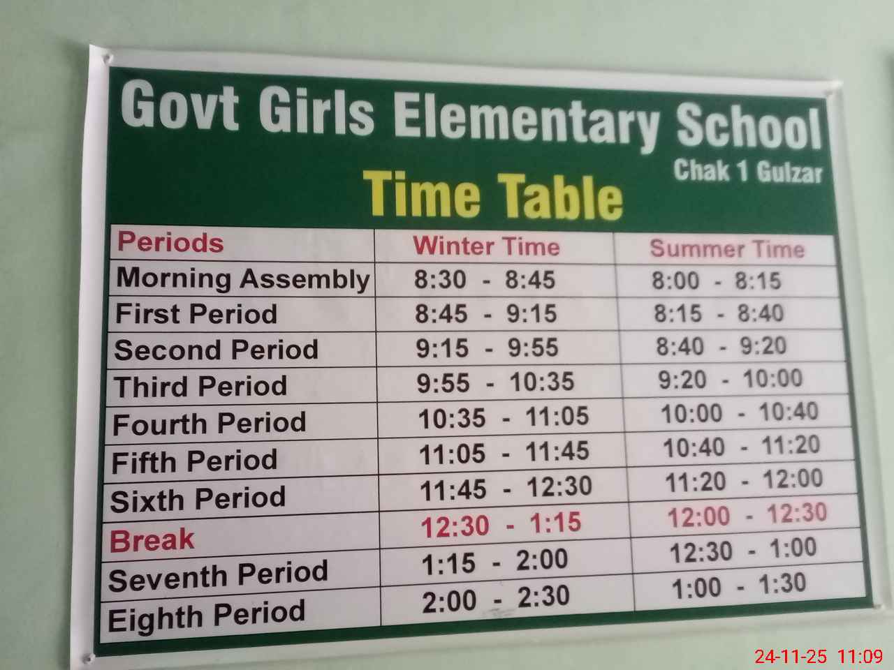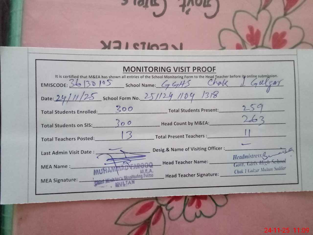 | EMIS Code: 36130105 | Name of School: GGHS CHAK NO. 1 GULZAR | |||