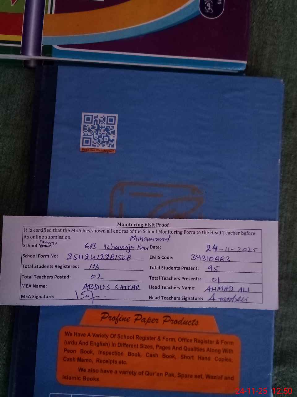 | EMIS Code: 39310883 | Name of School: GPS KHAWAJA NOOR MUHAMMAD | |||