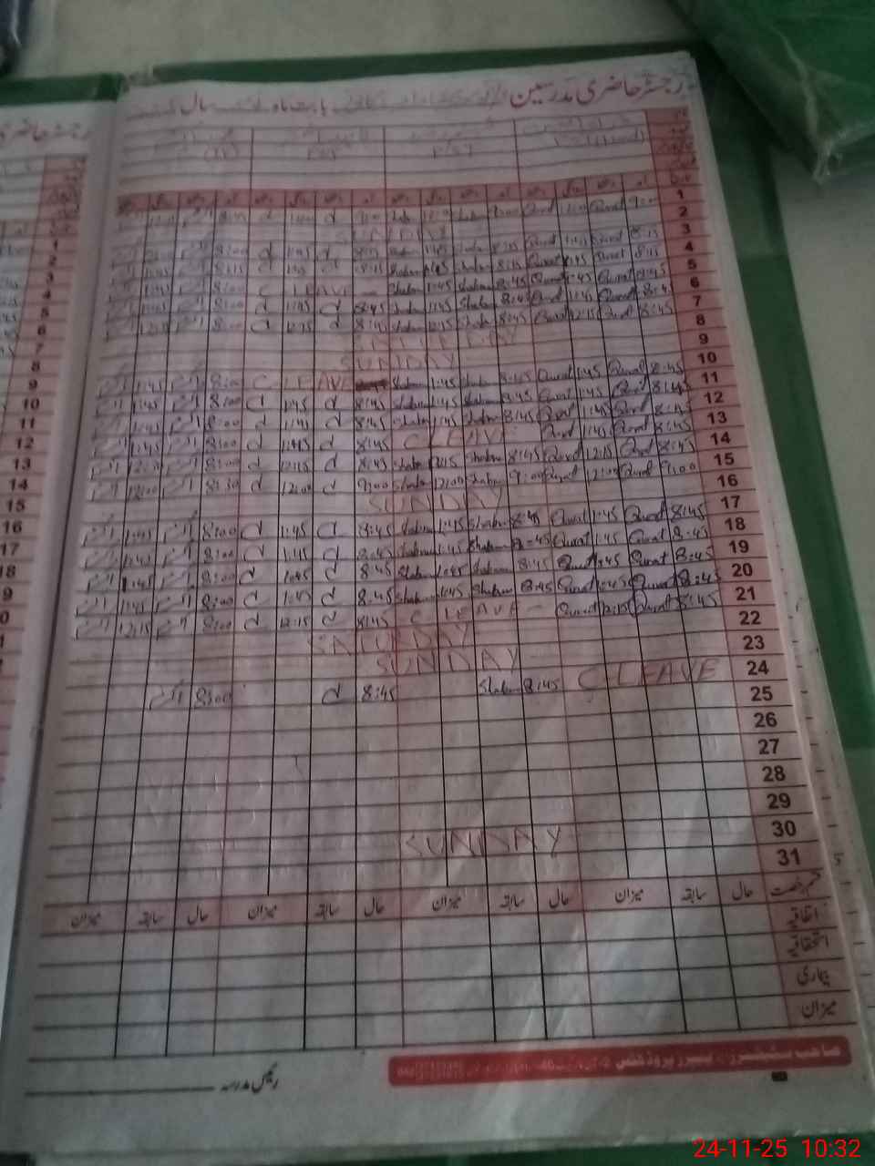 | CNIC | Full Name | Designation | R/C | Absence During Last Calender Month |
