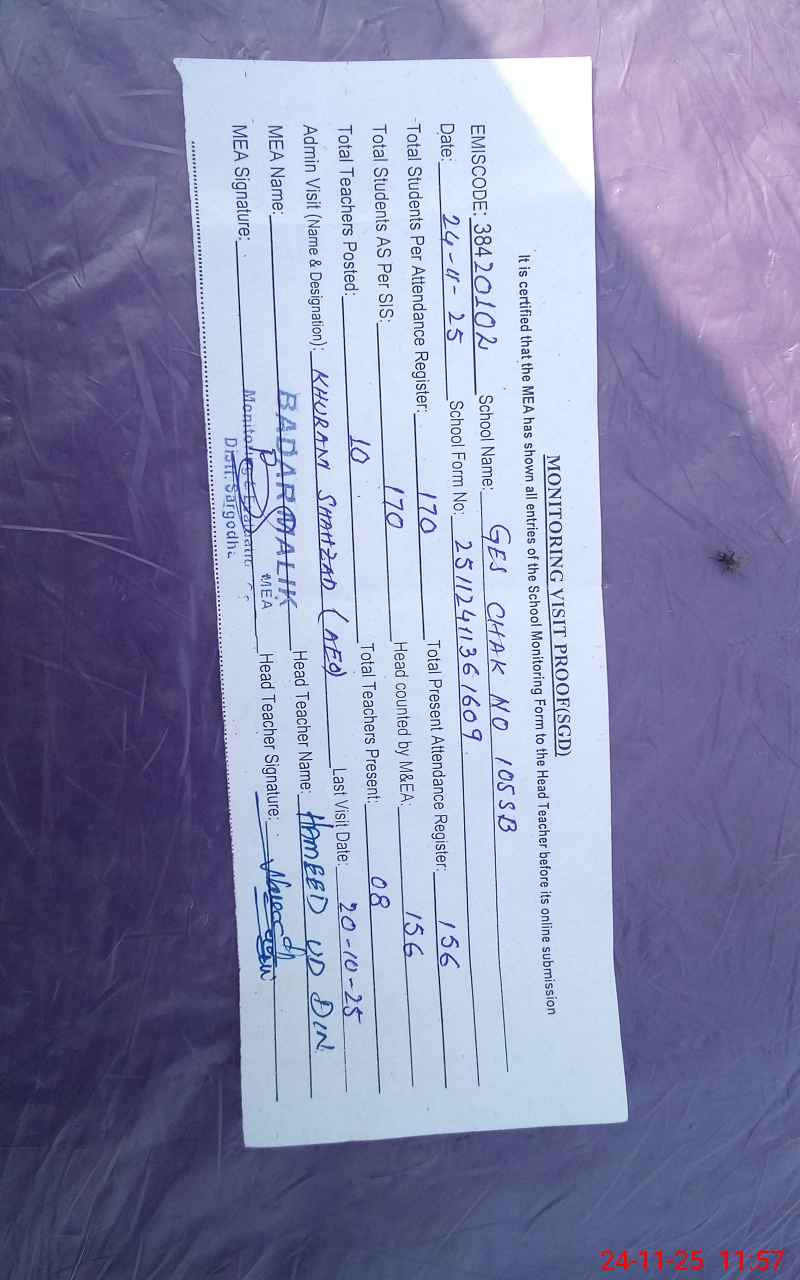 | EMIS Code: 38420102 | Name of School: GES CHAK NO.105 SB | |||