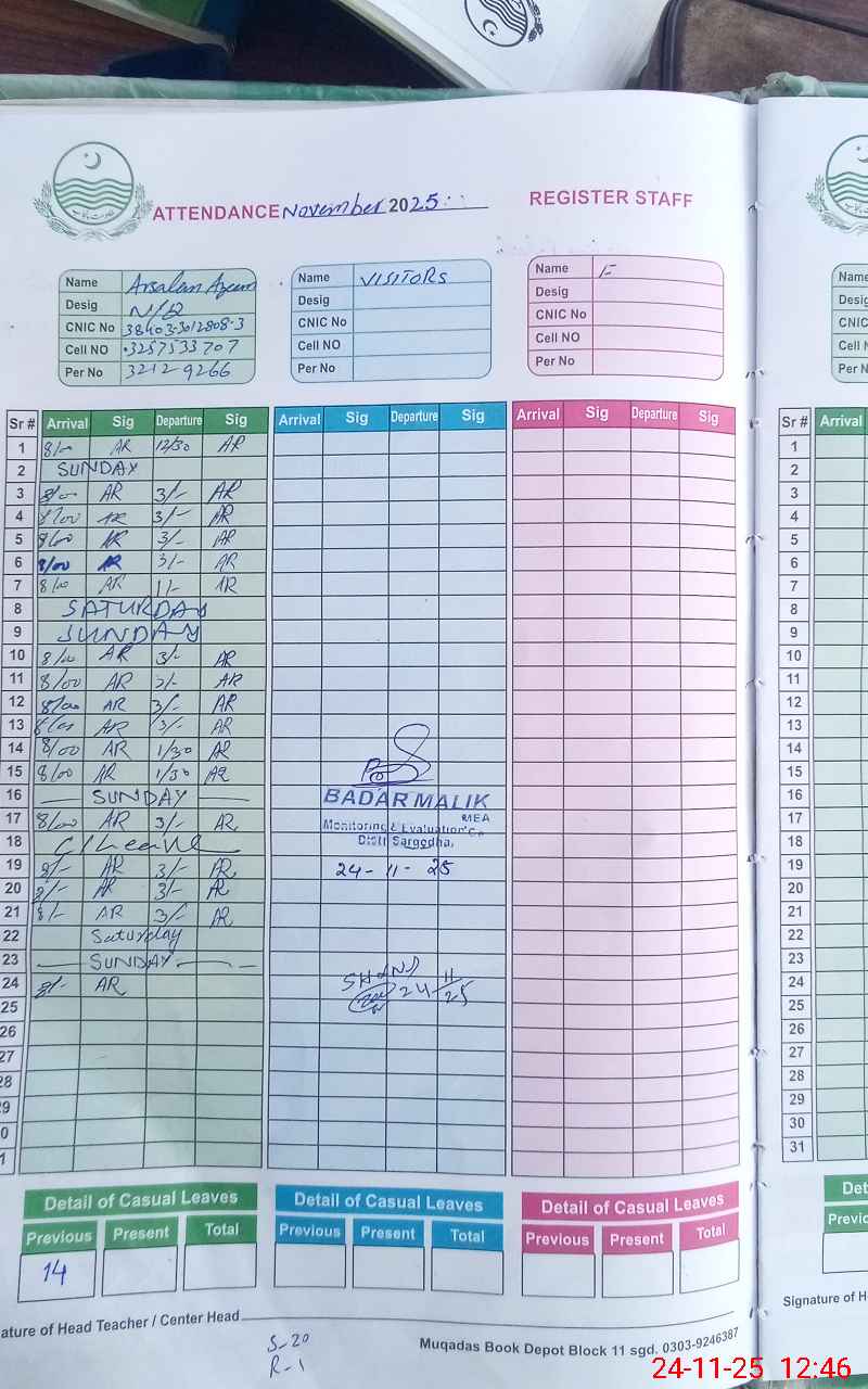 | Name: Sa**** Al**** Designation: (School Headmaster's/Headmistress's) SST (Sci Phone/Cell Number: 03**** |