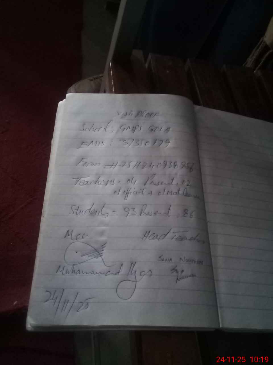 | Attendance Register | Head Teacher | MEA with School | Visit Proof |