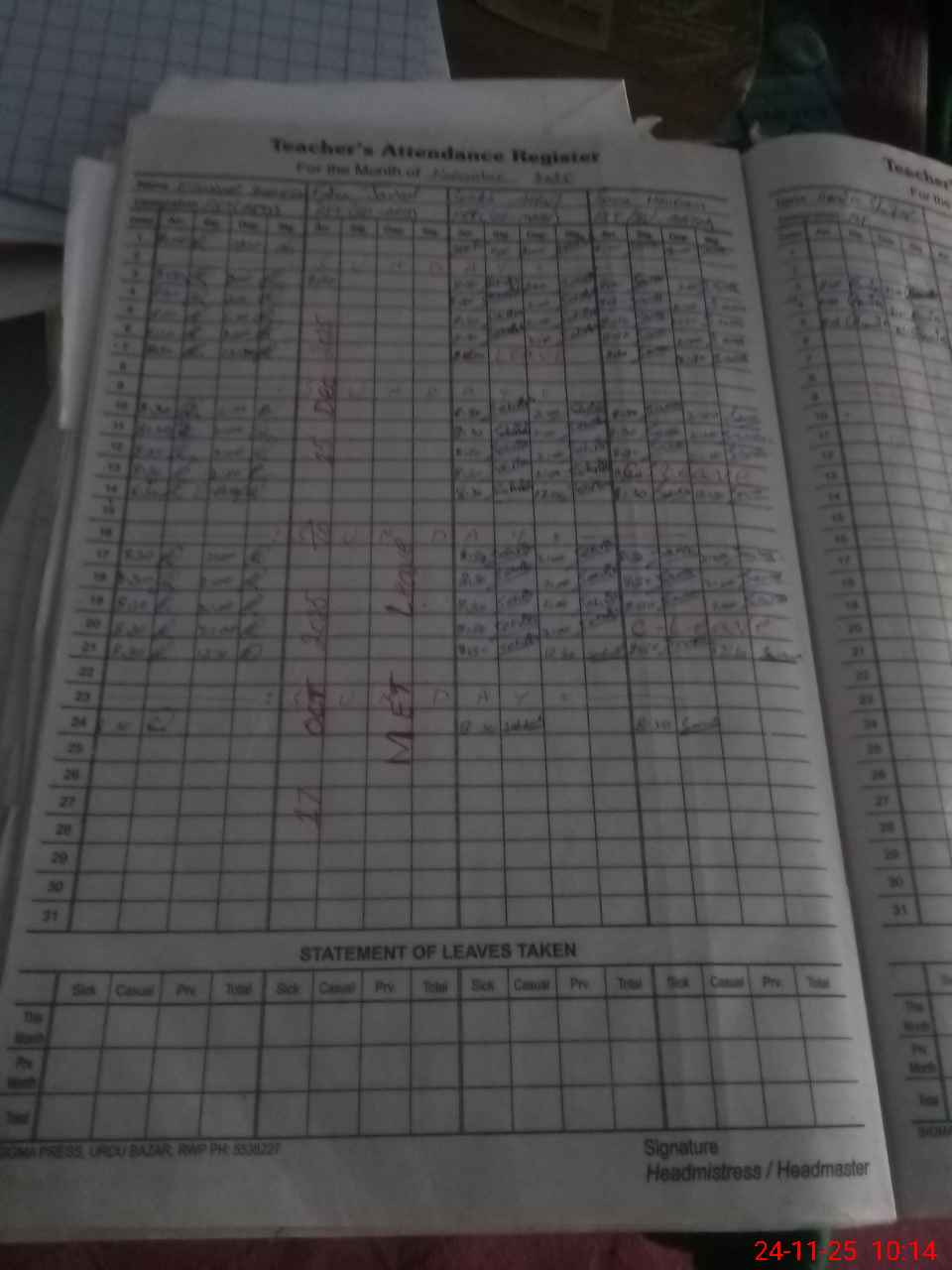 | Leave | Duty | Absent | Maternity | Medical | Ex- Pak |