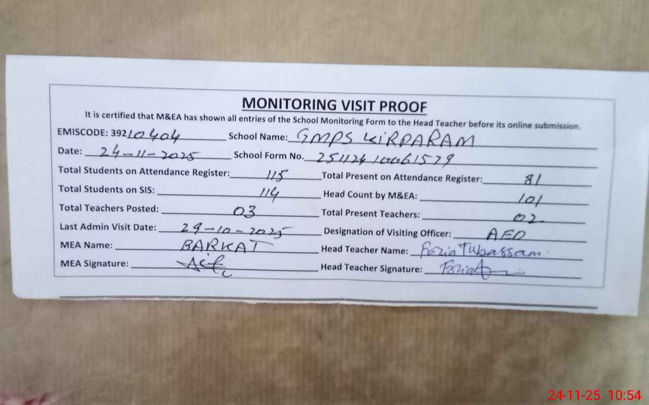 | EMIS Code: 39210404 | Name of School: GMPS KIRPARAM | |||