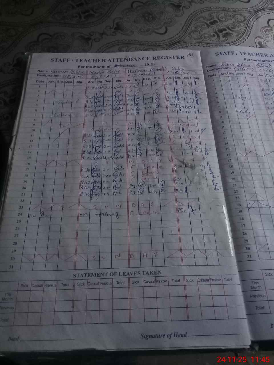 | 37**** | Ra**** Kh**** | EST | Regular | 0 | 0 | 0 | 0 | 0 | 0 | 0 | 0 | 0 | Exam Duty |