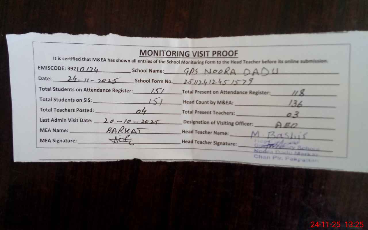 | EMIS Code: 39210174 | Name of School: GPS NOORA DADU PO PAKPATTAN | |||