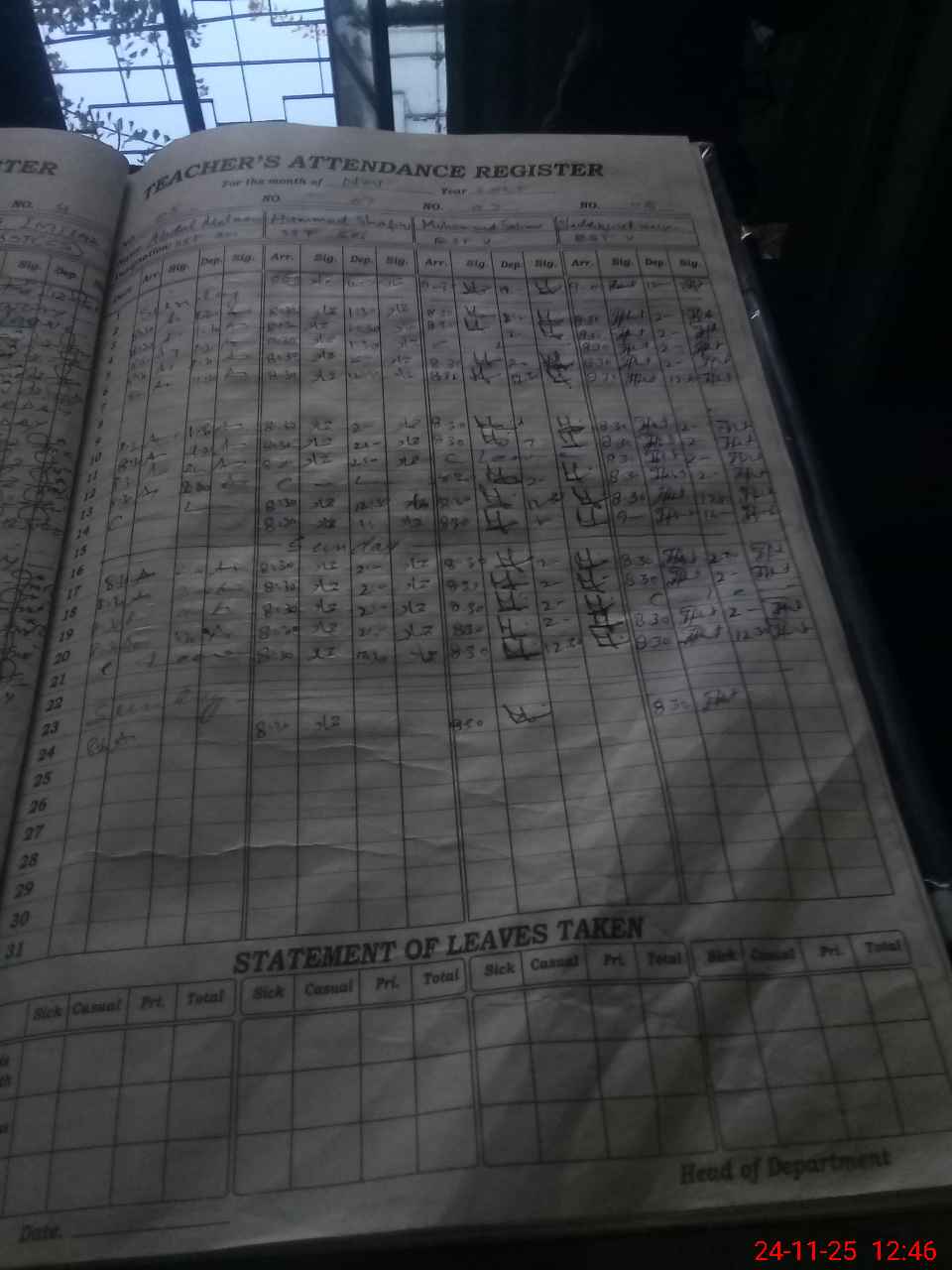 | Leave | Duty | Absent | Maternity | Medical | Ex- Pak |