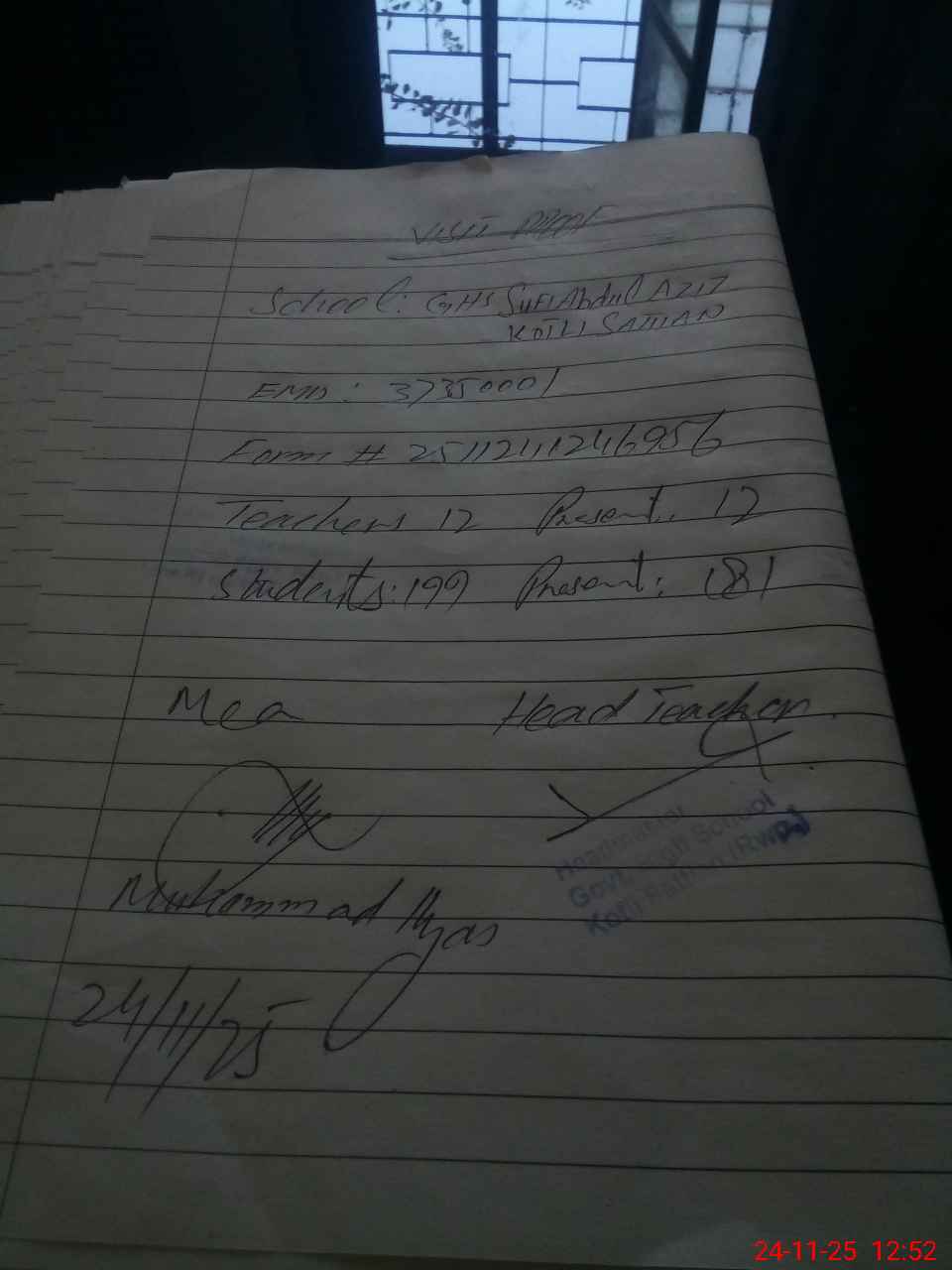 | Attendance Register | Head Teacher | MEA with School | Visit Proof |