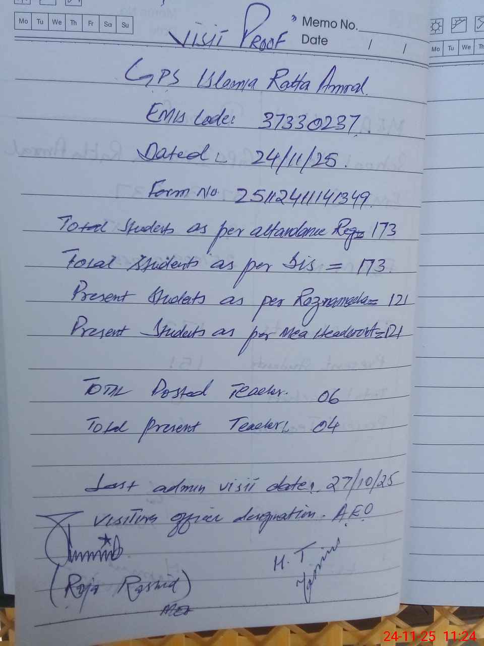 | EMIS Code: 37330237 | Name of School: GPS ISLAMIA RATTA AMRAL | |||
