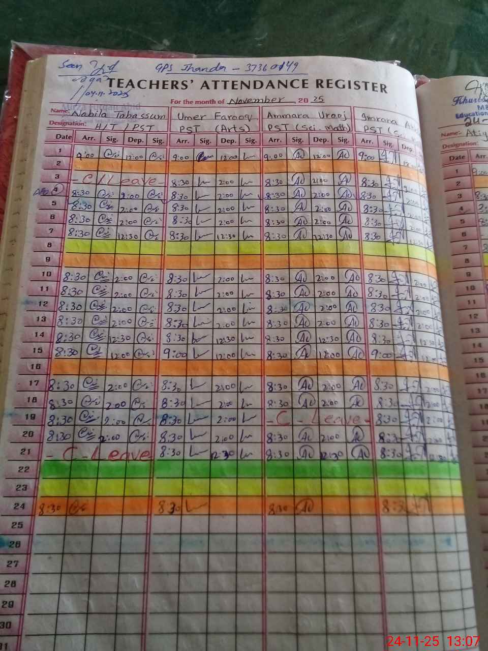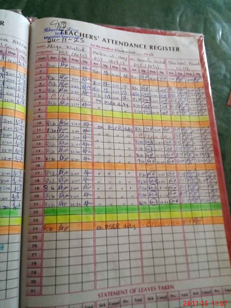 | CNIC | Full Name | Designation | R/C | Absence During Last Calender Month |