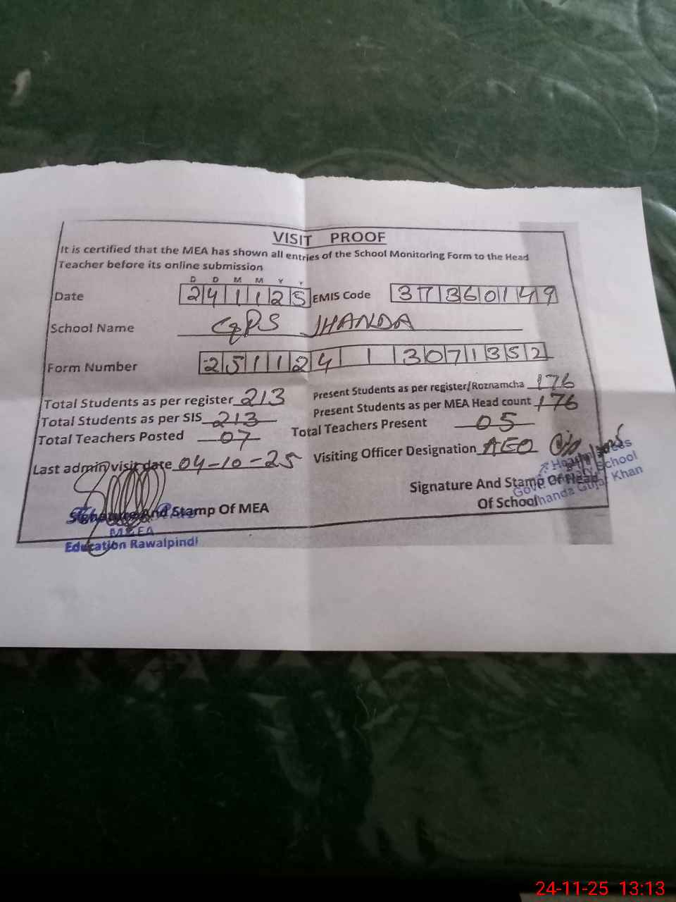 | EMIS Code: 37360149 | Name of School: GPS JHANDA | |||
