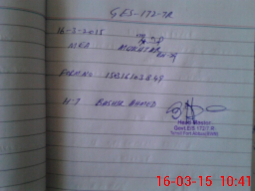 | Name: NA**** JA**** Designation: (School Headmaster's/Headmistress's) S.S.T GENERAL Phone/Cell Number: 03**** |