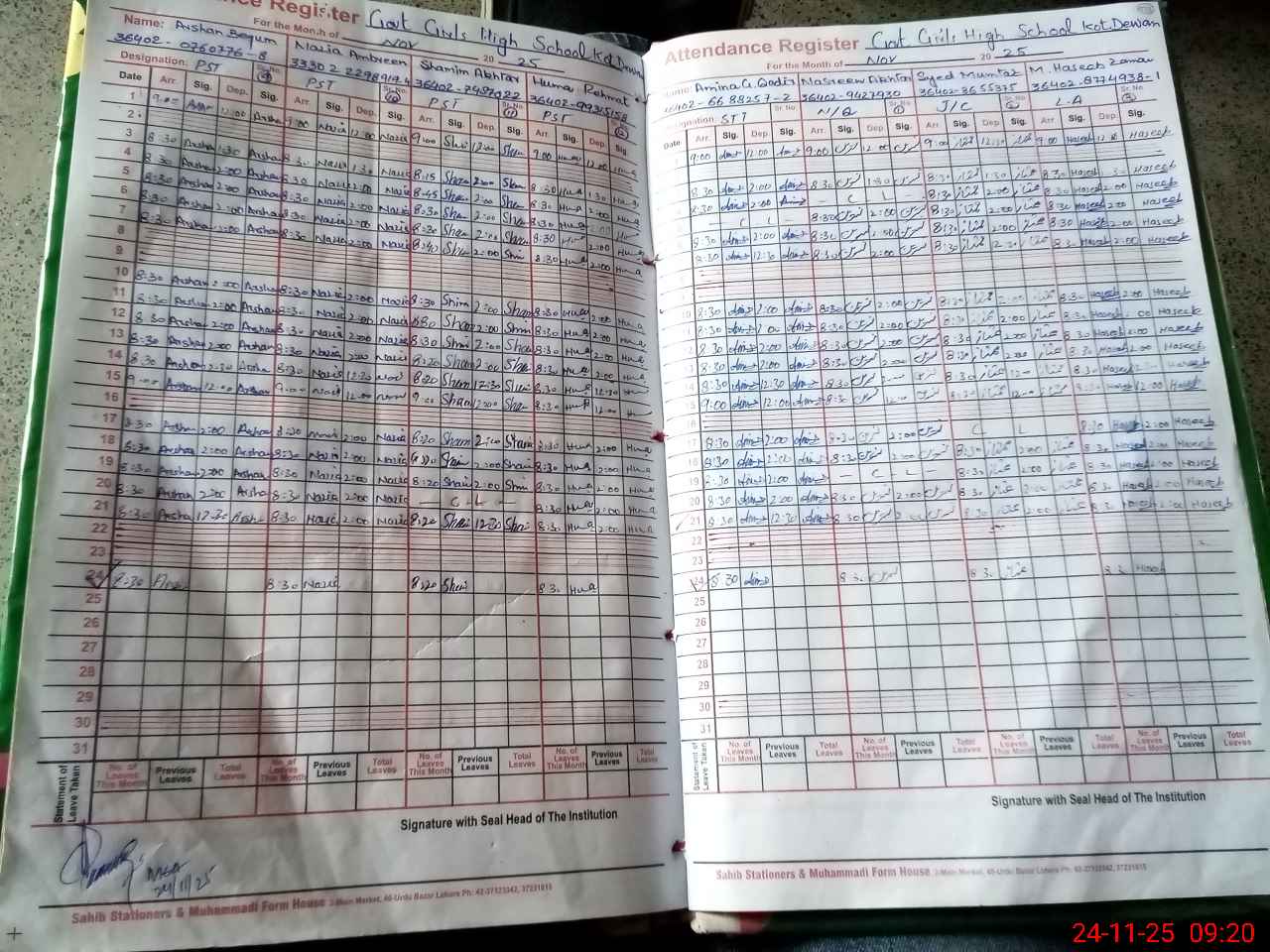 | Remarks (Use Separate Page if Required): sti Amna Gjulam Qadir present in this school books record D 4 incomplete | |||||