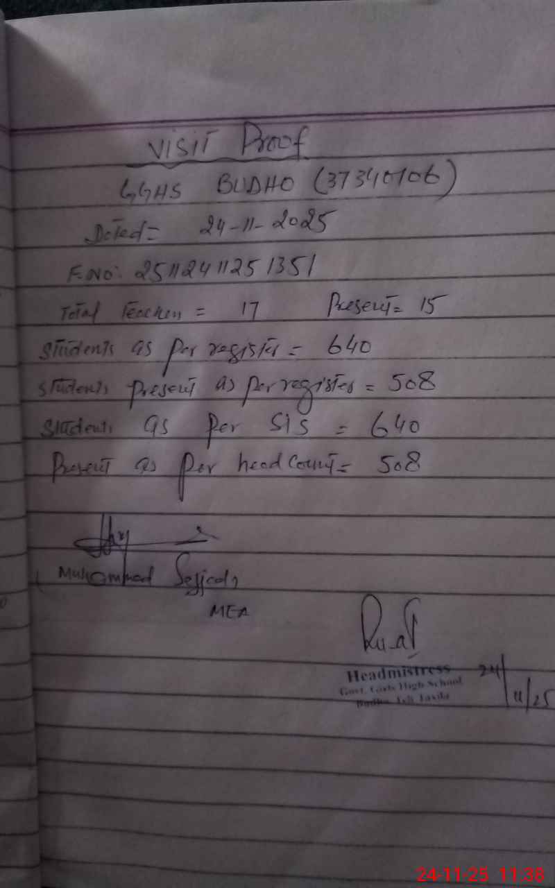 | EMIS Code: 37340106 | Name of School: GGHS BUDHO | |||