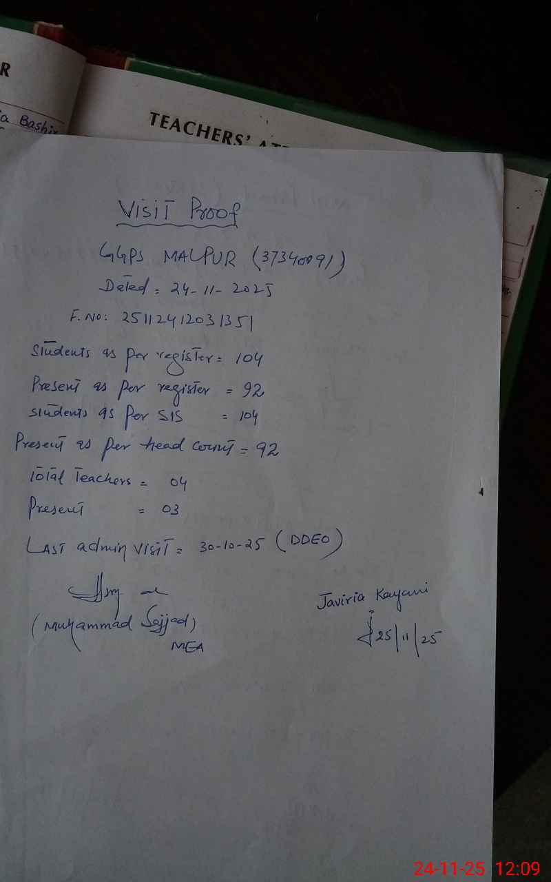 | EMIS Code: 37340091 | Name of School: GGPS MALPUR | |||