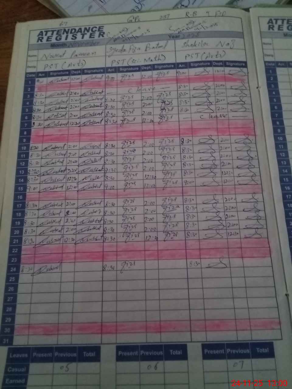 | CNIC | Full Name | Designation | R/C | Absence During Last Calender Month |