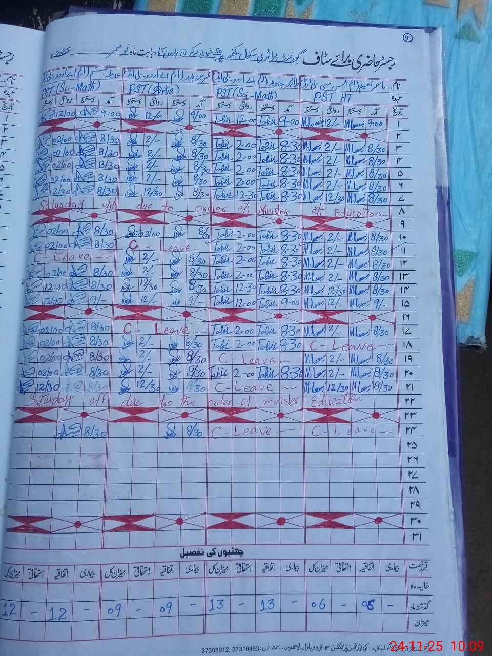 | CNIC | Full Name | Designation | R/C | Absence During Last Calender Month |