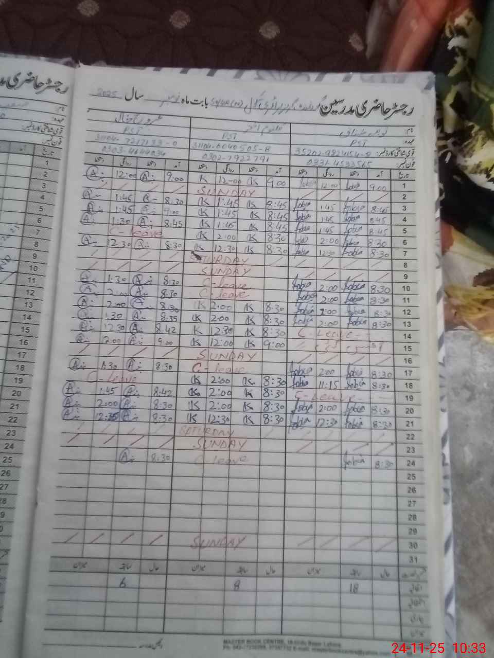 | CNIC | Full Name | Designation | R/C | Absence During Last Calender Month |