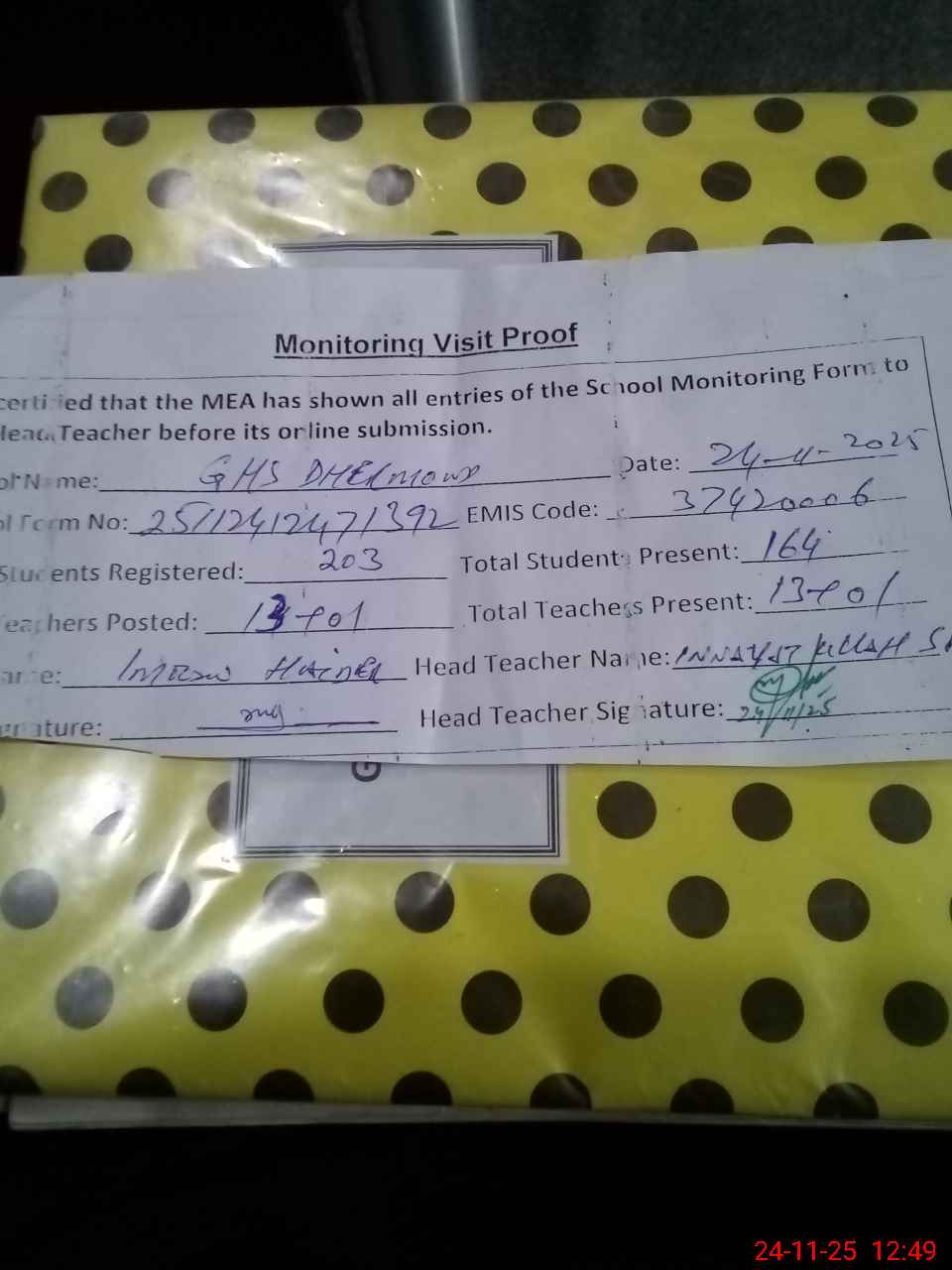| EMIS Code: 37420006 | Name of School: GHS DHERMOND | |||