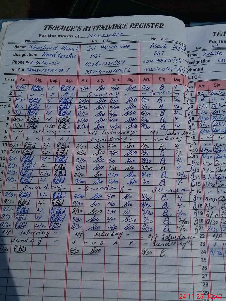 | Name: KH**** Designation: (School Headmaster's/Headmistress's) PST Phone/Cell Number: 03**** |