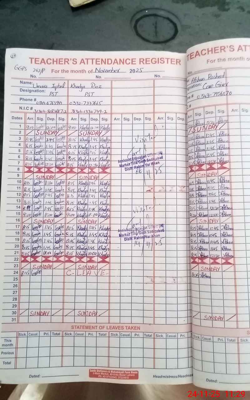 | District: RAHIMYAR KHAN | Tehsil: SADIQABAD | Markaz: TILLO GOTH - FEMALE | Level: Primary | |