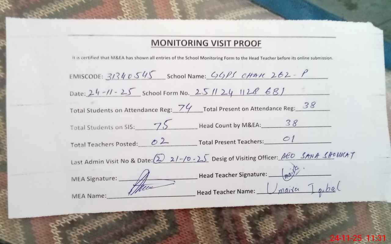 | EMIS Code: 31340545 | Name of School: GGPS CHAK 262/P | |||