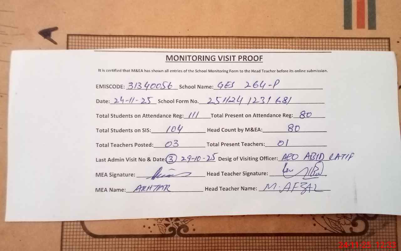 | EMIS Code: 31340056 | Name of School: GES 264/P | |||