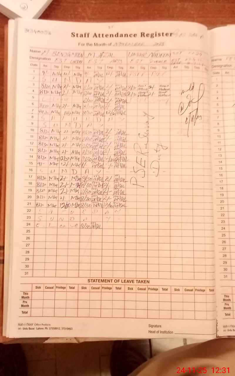 | 31**** | Mu**** Be**** | Regular | 0 | 0 | 0 | 0 | 0 | 0 | 0 | 0 | 0 | Absent (Un-Authorized) | |