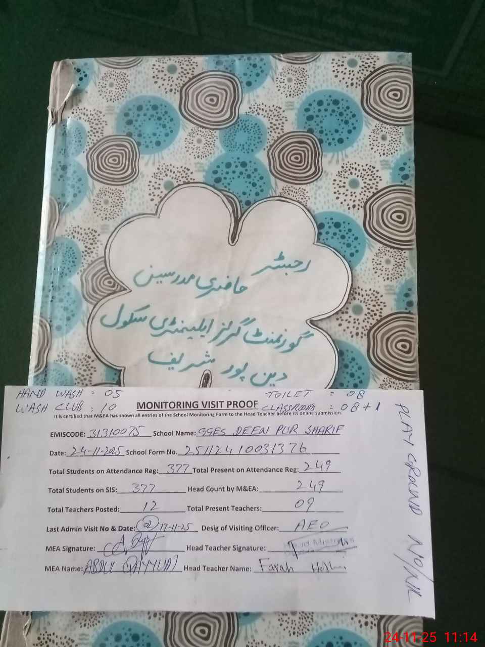 | EMIS Code: 31310075 | Name of School: GGES DIN PUR SHARIF | |||