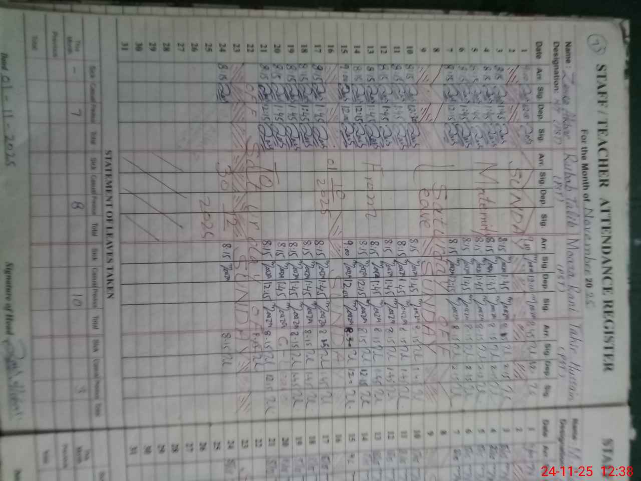 | Leave | Duty | Absent | Maternity | Medical | Ex- Pak |