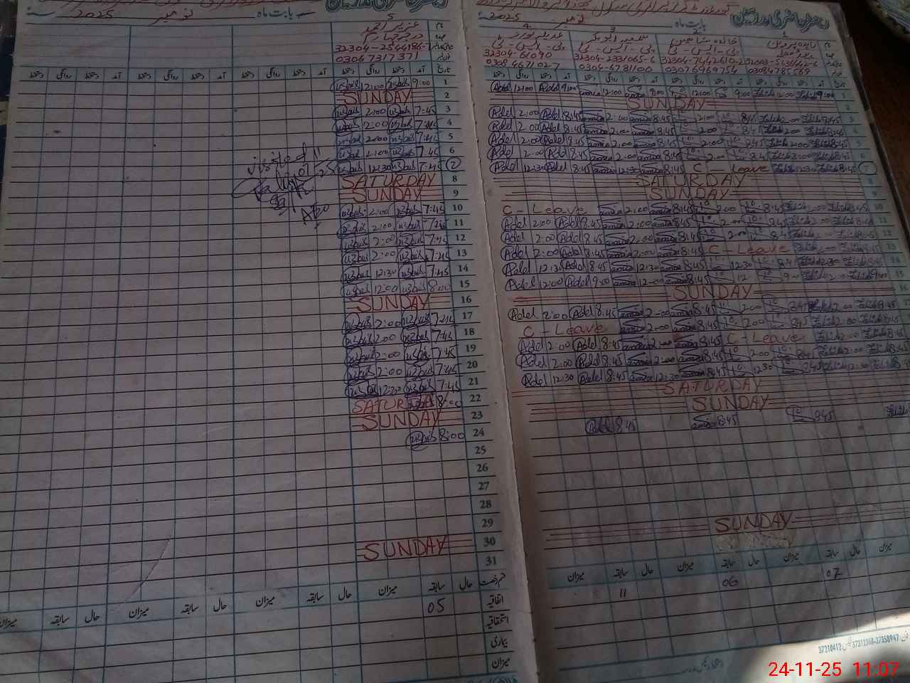 | CNIC | Full Name | Designation | R/C | Absence During Last Calender Month |