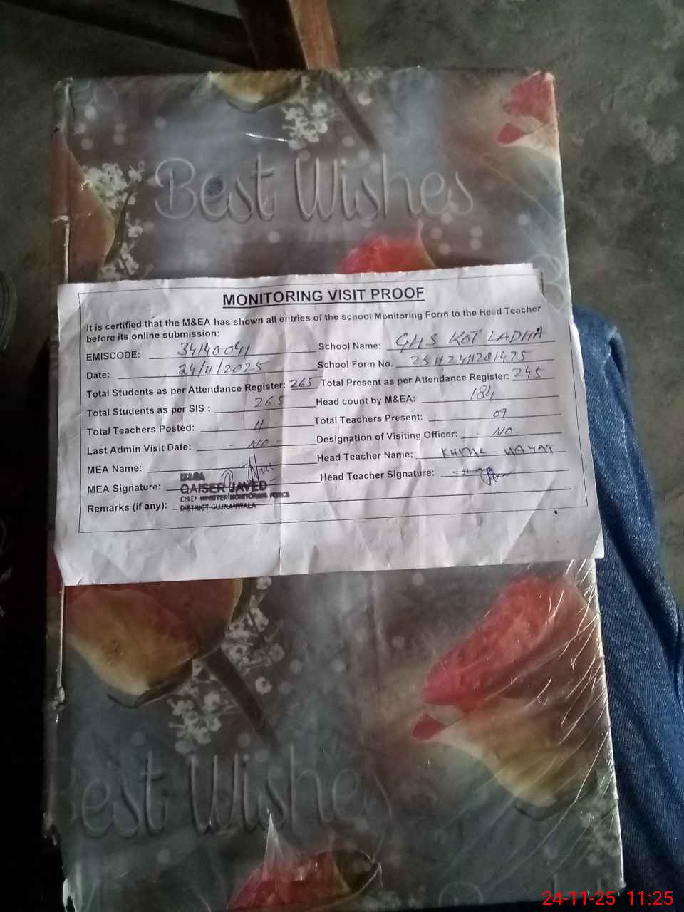 | Attendance Register | Head Teacher | MEA with School | Visit Proof |