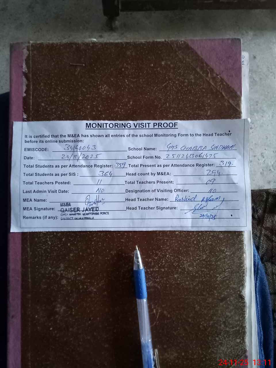 | EMIS Code: 34140043 | Name of School: GHS CHABBA SINDWAN | |||