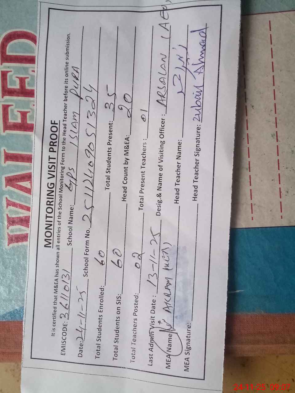 | EMIS Code: 36110131 | Name of School: GPS ISLAM PURA BASTI ISLAM PUR MULTAN | |||