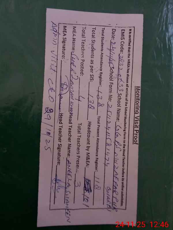 | EMIS Code: 38320633 | Name of School: GGPS MUZAFFAR PUR GHARBI | |||