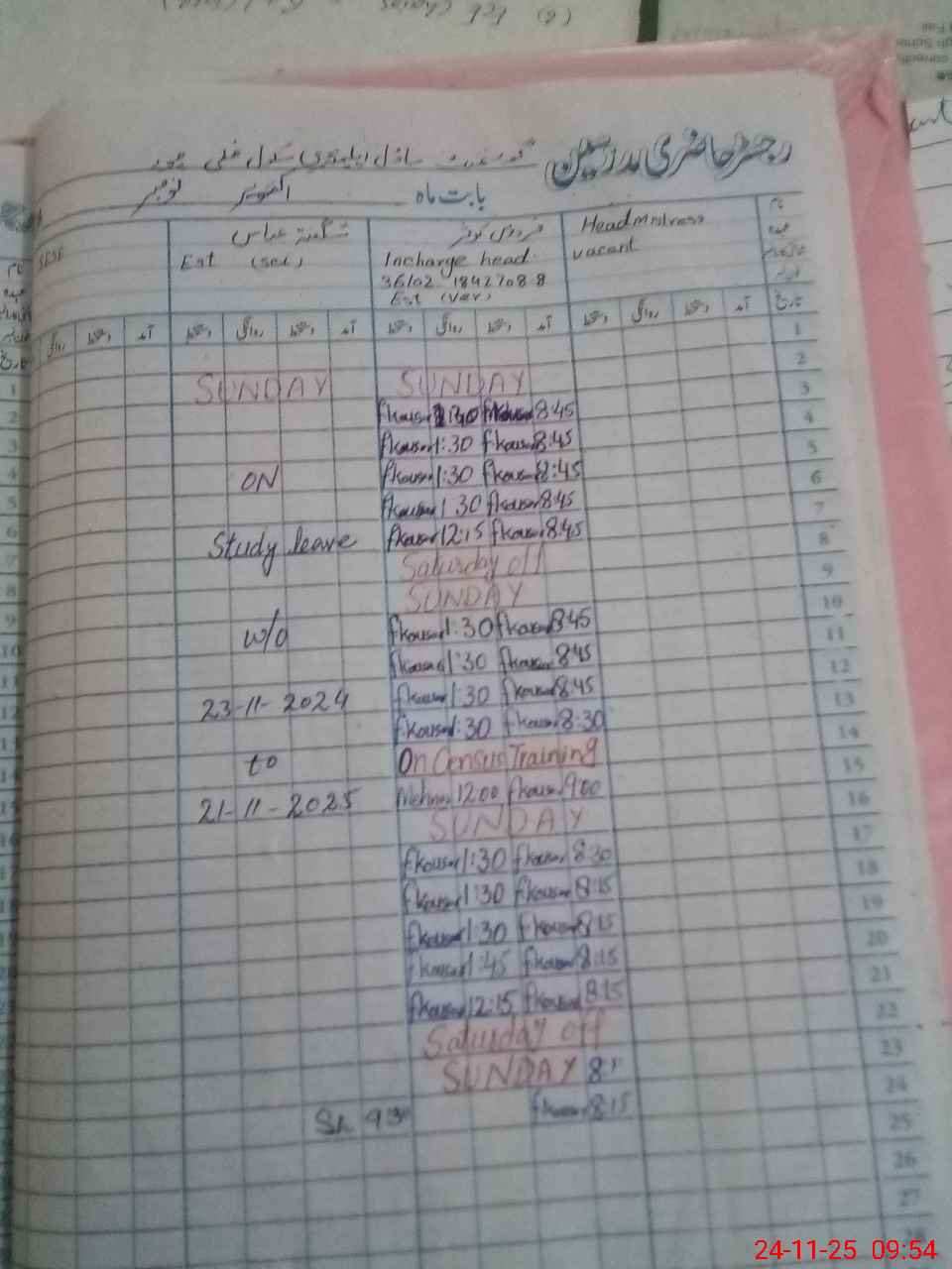 | Name: Sh**** Ab**** Designation: (School Headmaster's/Headmistress's) EST Sci Phone/Cell Number: 03**** |