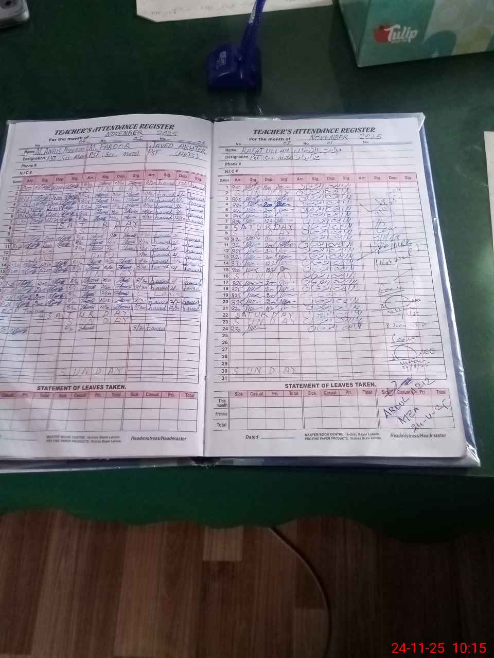 | CNIC | Full Name | Designation | R/C | Absence During Last Calender Month |