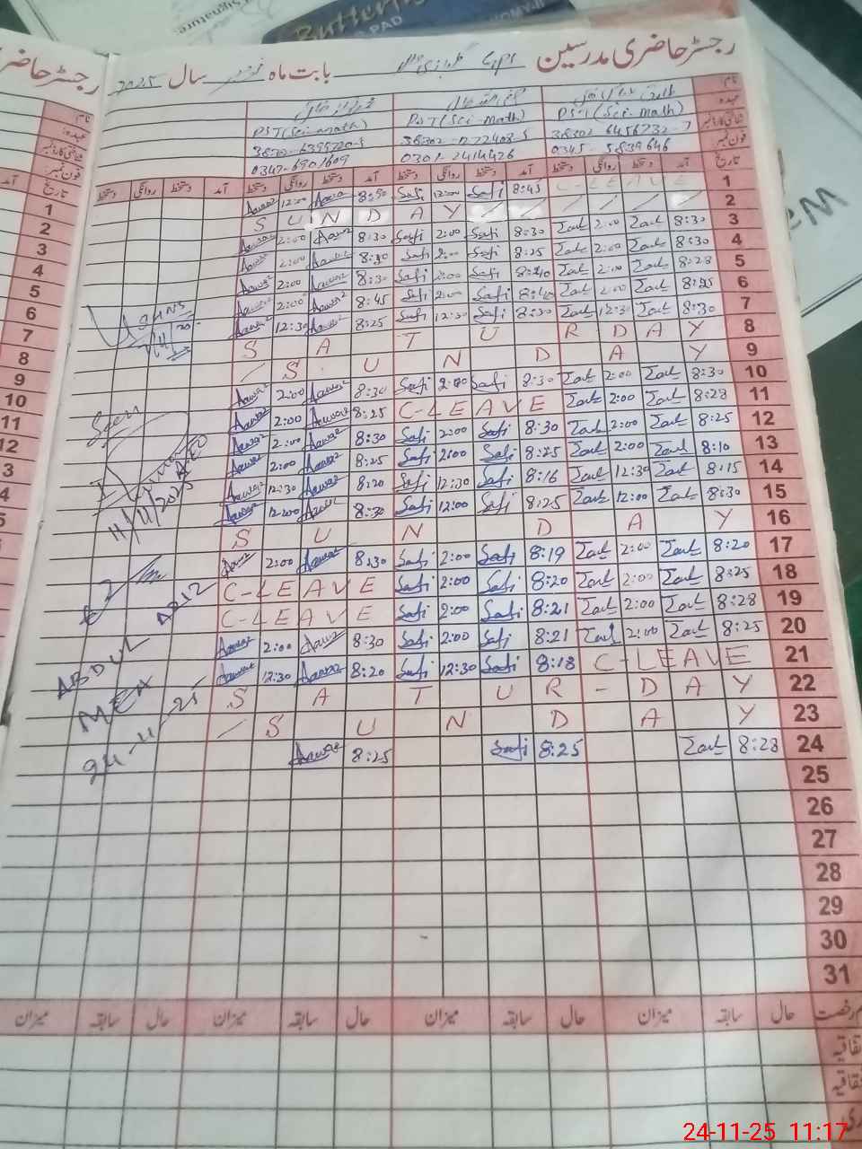 | CNIC | Full Name | Designation | R/C | Absence During Last Calender Month |