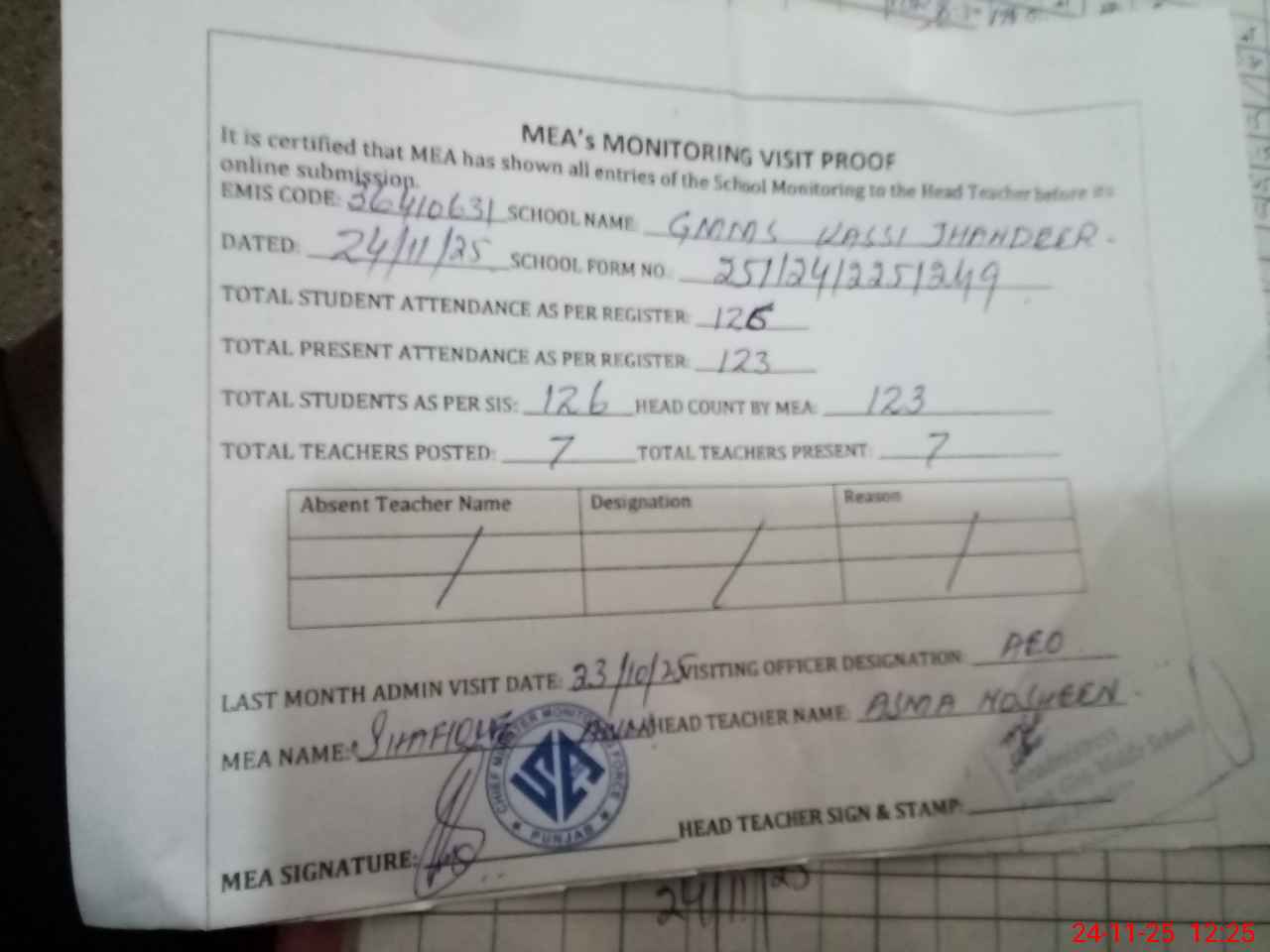 | EMIS Code: 36410631 | Name of School: GMMS KASSI JHANDEER | |||
