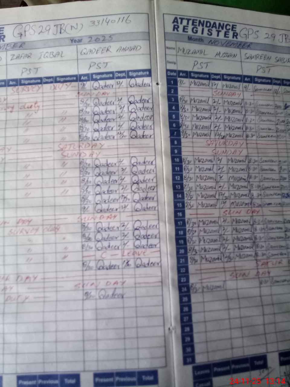 | CNIC | Full Name | Designation | R/C | Absence during last cal. month |