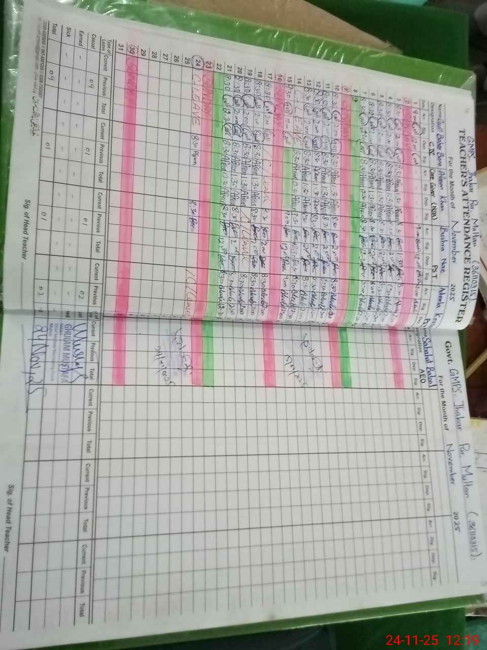 | CNIC | Full Name | Designation | R/C | Absence During Last Calender Month |