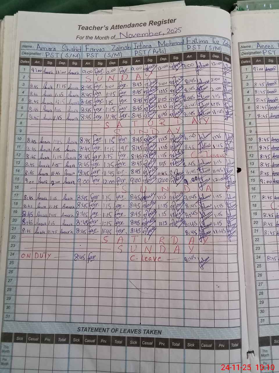 | Leave | Duty | Absent | Maternity | Medical | Ex- Pak |
